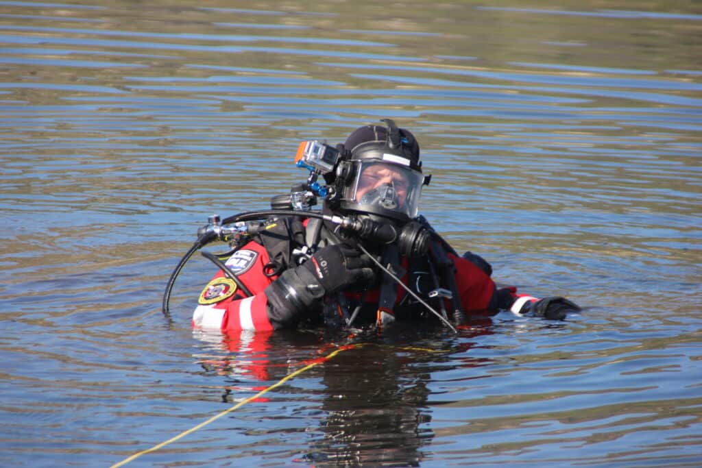 Dive Rescue 1 is the internationally renowned three-day (24 hour) training program for certified divers and surface support personnel. Successful completion of the Dive Rescue I program provides basic methods and skills necessary for a Public Safety Diver to function safely and effectively at a water accident. From scene evaluation to incident debriefing, this program covers it all. Diving and surface support personnel learn to apply the latest techniques in underwater rescue and recovery to prepare them to respond effectively and safely to water incidents.