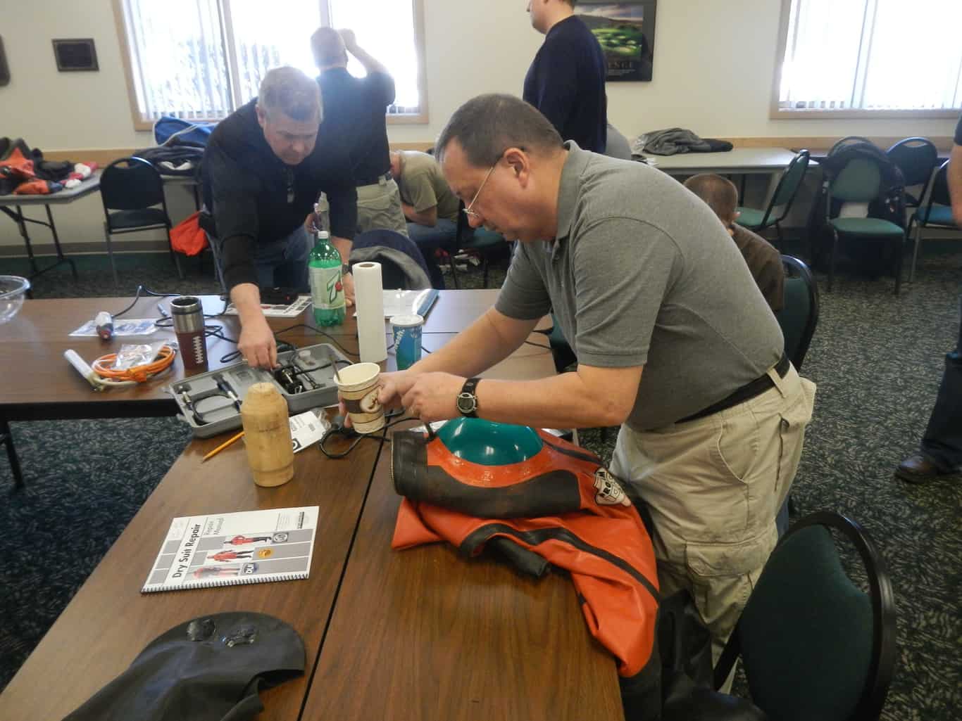 Dry Suit Repair Technician training certifies students to repair and maintain vulcanized rubber as well as trilaminate style dry suits. Training Topics include: Maintenance • Repair • Tears • Punctures • Torn or worn seals • Zippers • Testing for leaks • Replacing neck seals • Replacing hoods • Replacing wrist seals
