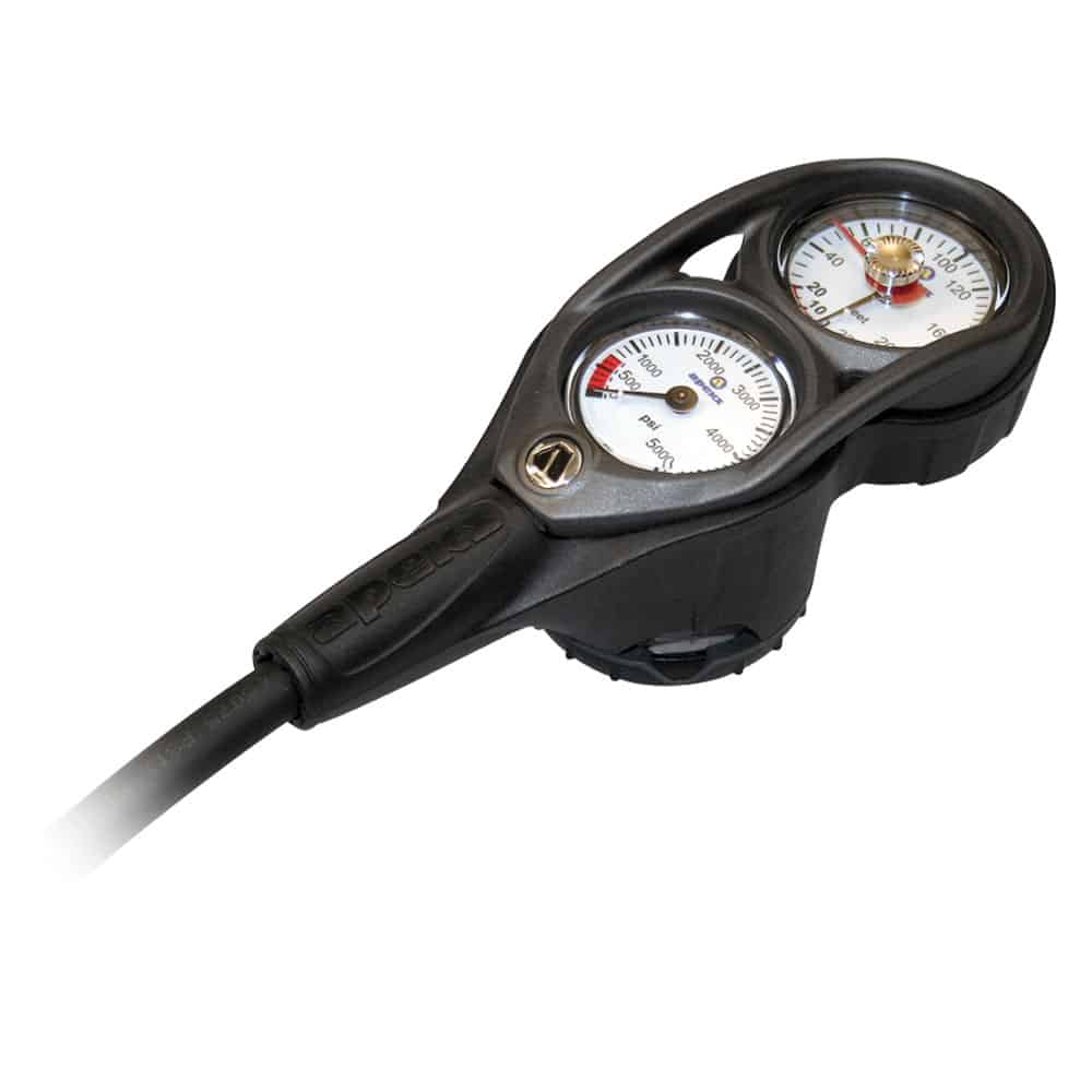 Our Apeks 3-Gauge Dive Console includes a Pressure Gauge, Depth Gauge and a Compass. Designed with ease-of-use and simplicity in mind, the pressure and depth gauge displays are designed with such features as a luminescent gauge face for easy reading in low light.