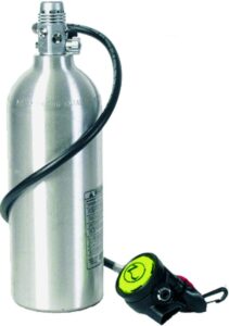 • Using a clever bayonet mount, the Airsource quickly and easily separates from the BC at the “Trim Grip”. This allows the Airsource to remain with the diver’s complete regulator for packing and traveling