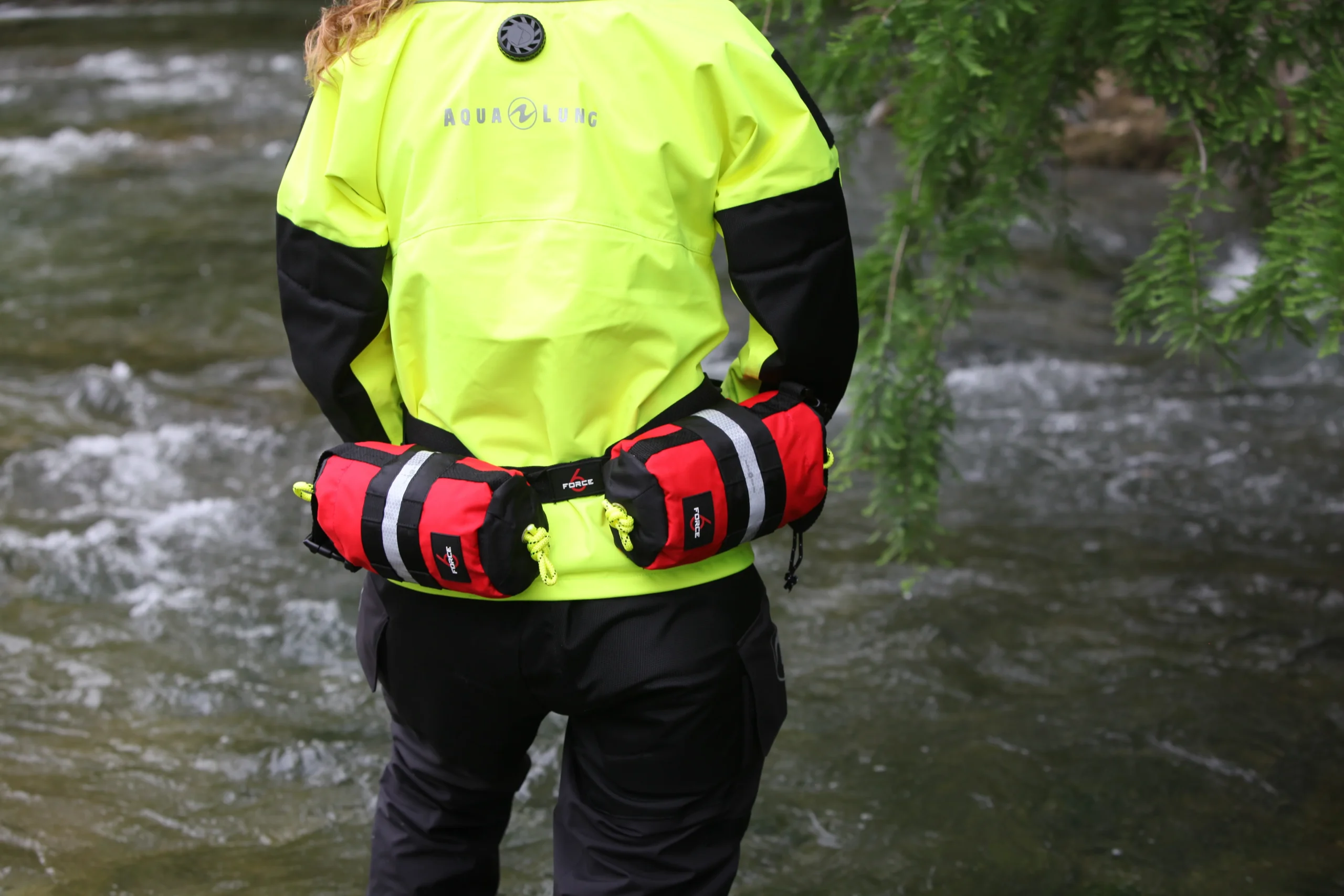 This USA-made throw bag waist belt was designed to make carrying our throw bags effortless and quick. Its quick-release clasp ensures a secure fit and ease of use. Perfect for water rescue professionals and outdoors enthusiasts.