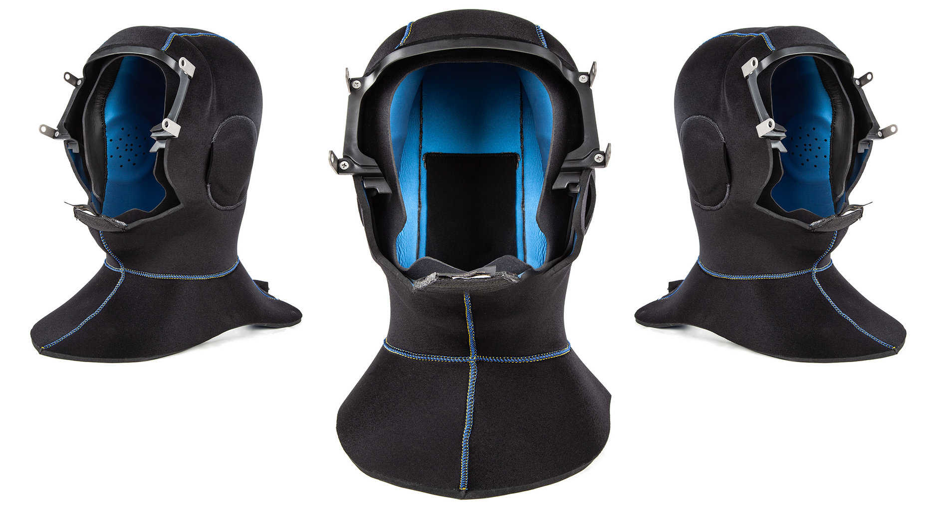 The Surface Supplied MOD-1 is designed for the dive team requiring a lightweight and durable commercial diving mask. An advanced MOD-1 mask model with specialized passages that allow venting the upper eye cavity is paired with a very comfortable extra stretchy 7 mm attached hood.