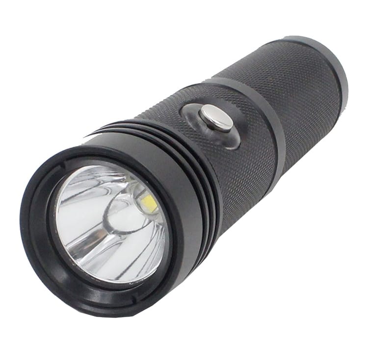 This light is perfect in the water, but also perfect on land when you need a powerful rugged flashlight. The NR-800 comes standard with a AAA battery holder but it can be used with an 18650 battery. It features 3 power levels and an SOS mode.