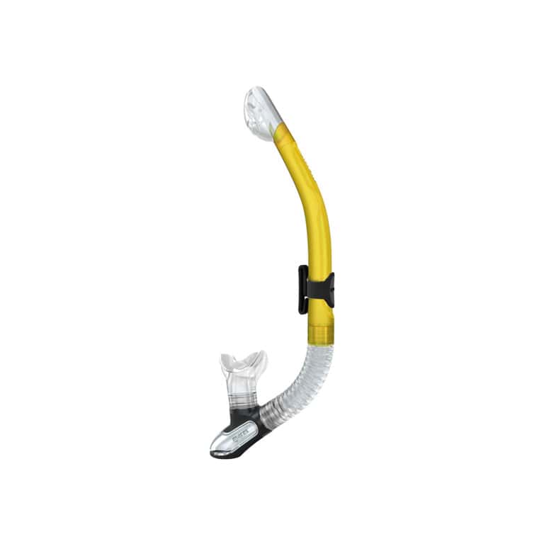 A dry top and an ergonomic mouthpiece make this the ideal snorkel for scuba or snorkeling sessions. The combination of the 100% dry top and exhaust valve in the mouthpiece ensure a completely dry breathing environment.
