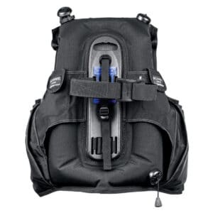 Deep Ocean Wings include the Retraction Band System, which is designed to keep the wing folded behind the diver’s shoulders, reducing drag and the chance of entanglement. Works with single or twin cylinders.