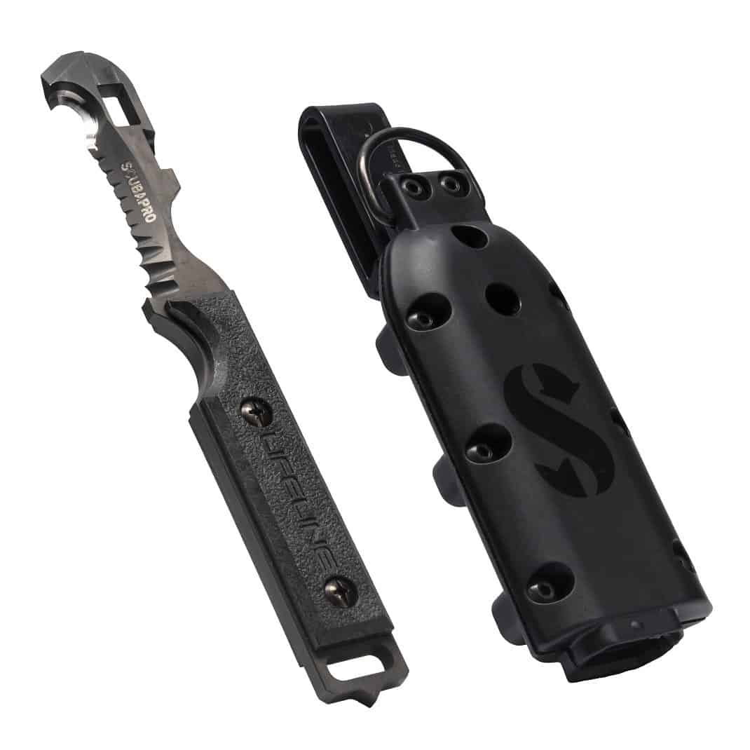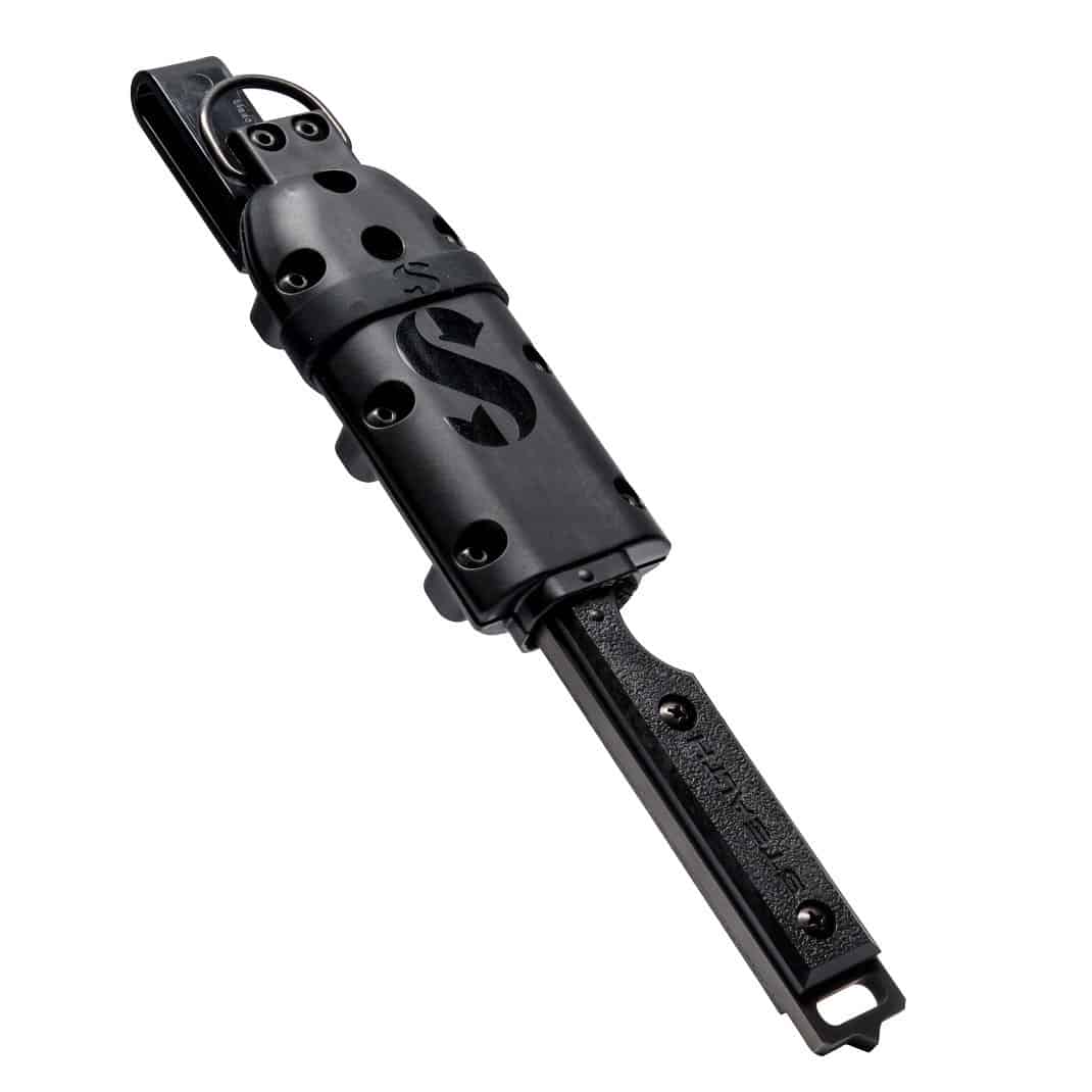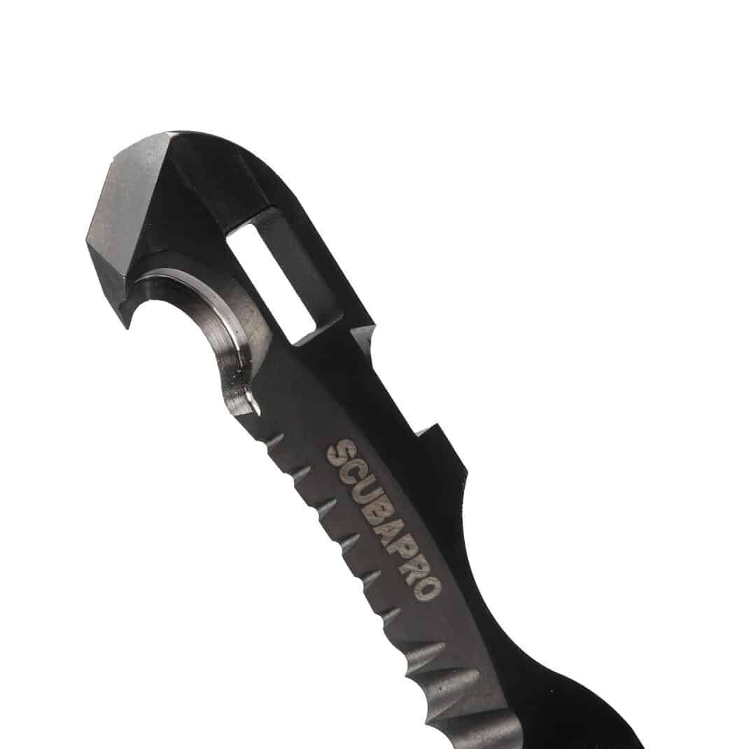 - Highly aggressive serrations can cut through a variety of materials found under water.