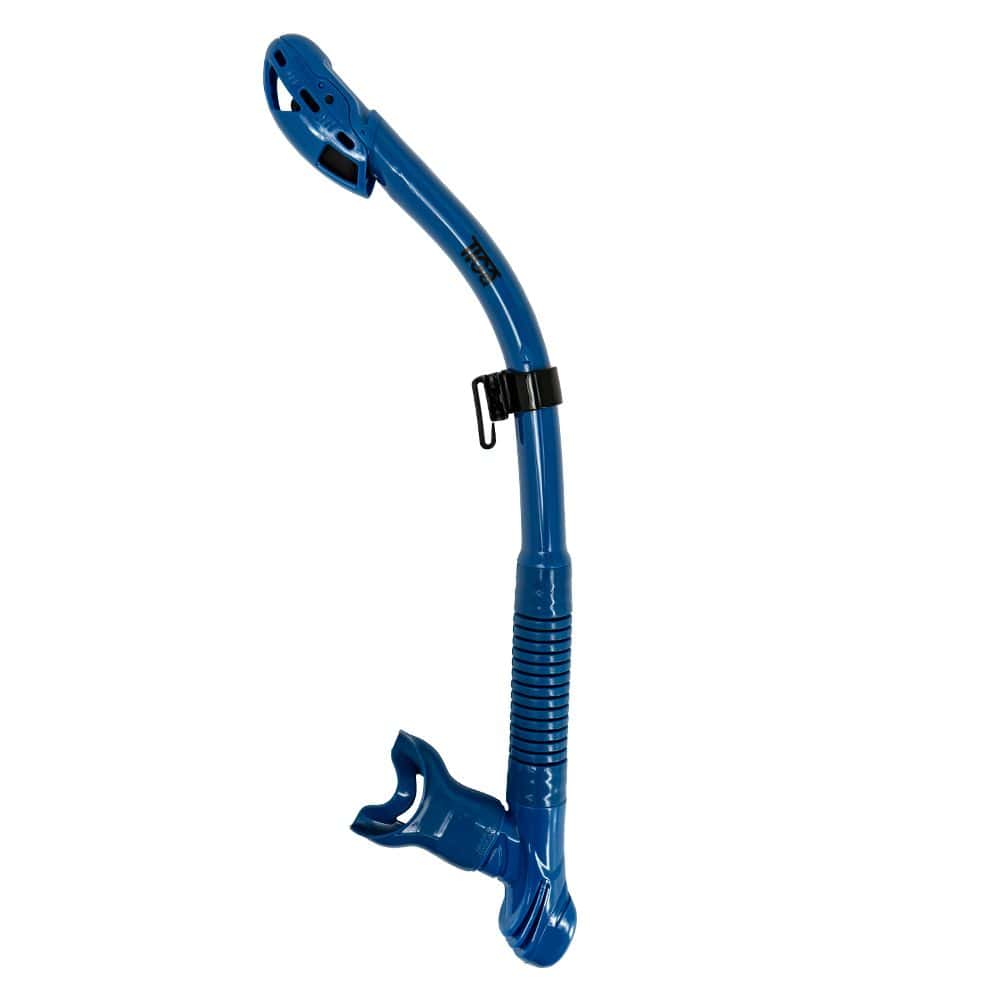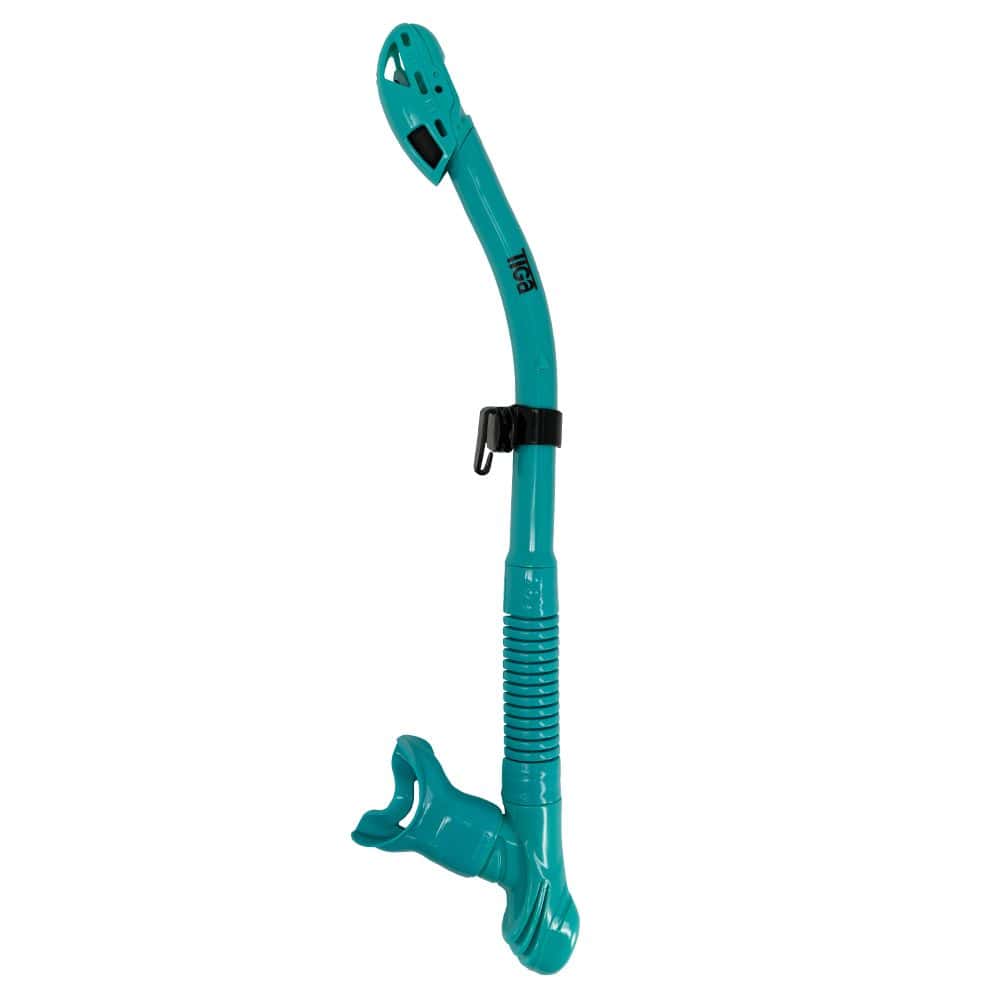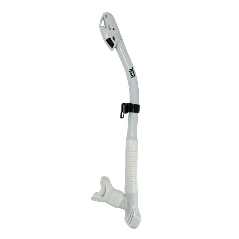 Utilizing cutting-edge dry snorkel technologies, the Tiga Dry Snorkel ensures effortless breathing and, most importantly, a dry experience for the diver. Its streamlined base design creates a spacious reservoir for air to flow freely from the tube to the mouthpiece without any restrictions. The oversize purge valve enables quick and easy clearing of the snorkel, enhancing convenience underwater. Crafted with a 100% liquid silicone mouthpiece and flex tube, the Tiga Snorkel guarantees comfort in every diving situation.