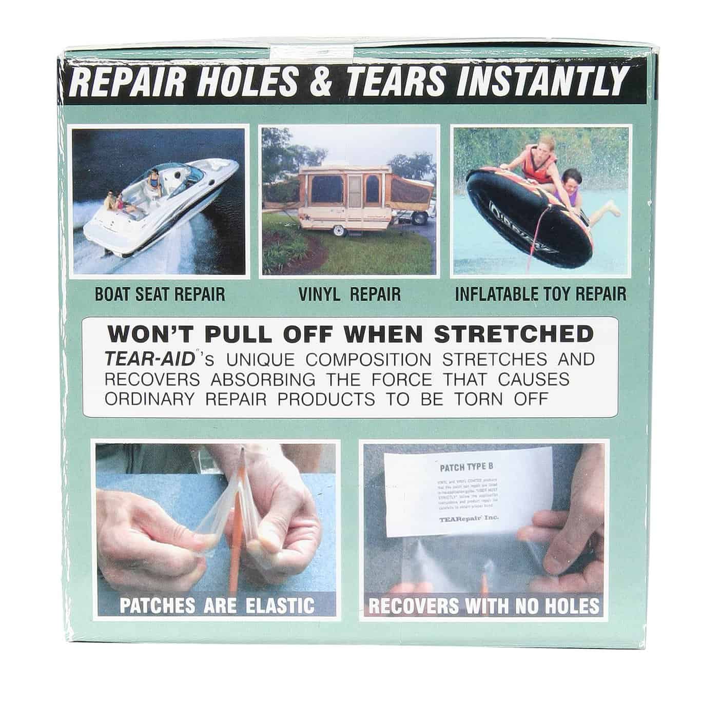 - For materials other than vinyl/PVC, use Type A Tear-Aid, Item#1980.