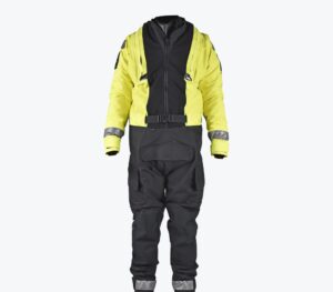 The HYBRID Front Entry (FE) Drysuit combines the technologies of the ENVIRO and HAZMAT Drysuits. The lightweight mobility of the ENVIRO material encompasses the upper portion of the suit. The HAZMAT’s outstanding material durability covers the lower portion of the suit from the waist seam down. This combination allows for greater upper body mobility while giving superior protection in lower extremities where the suit takes the most abuse.